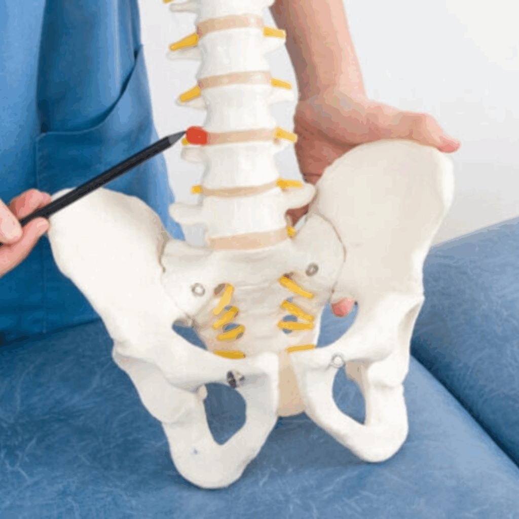 lo que puede generar compresión nerviosa y dolor en la espalda y piernas.